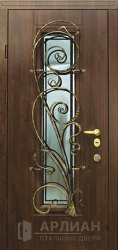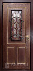 Входная кованная дверь с витражом и ковкой №20