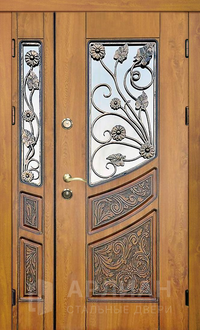 Дверь полуторная металлическая со стеклом и художественной ковкой №411