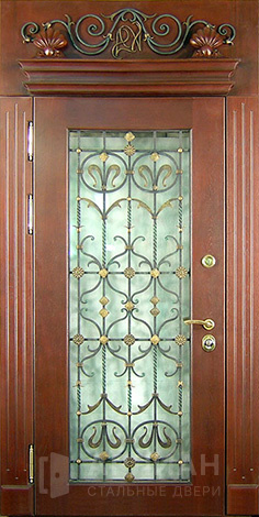 Дверь полуторная металлическая со стеклом и художественной ковкой №411